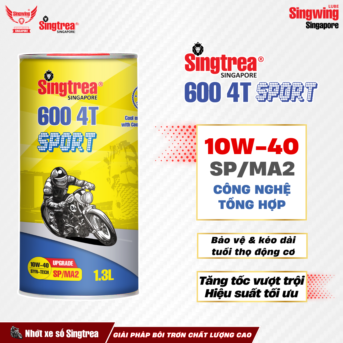 Nhớt xe máy Singtrea 600 4T Sport 10W40 SP/MA2 Lon 1.3L