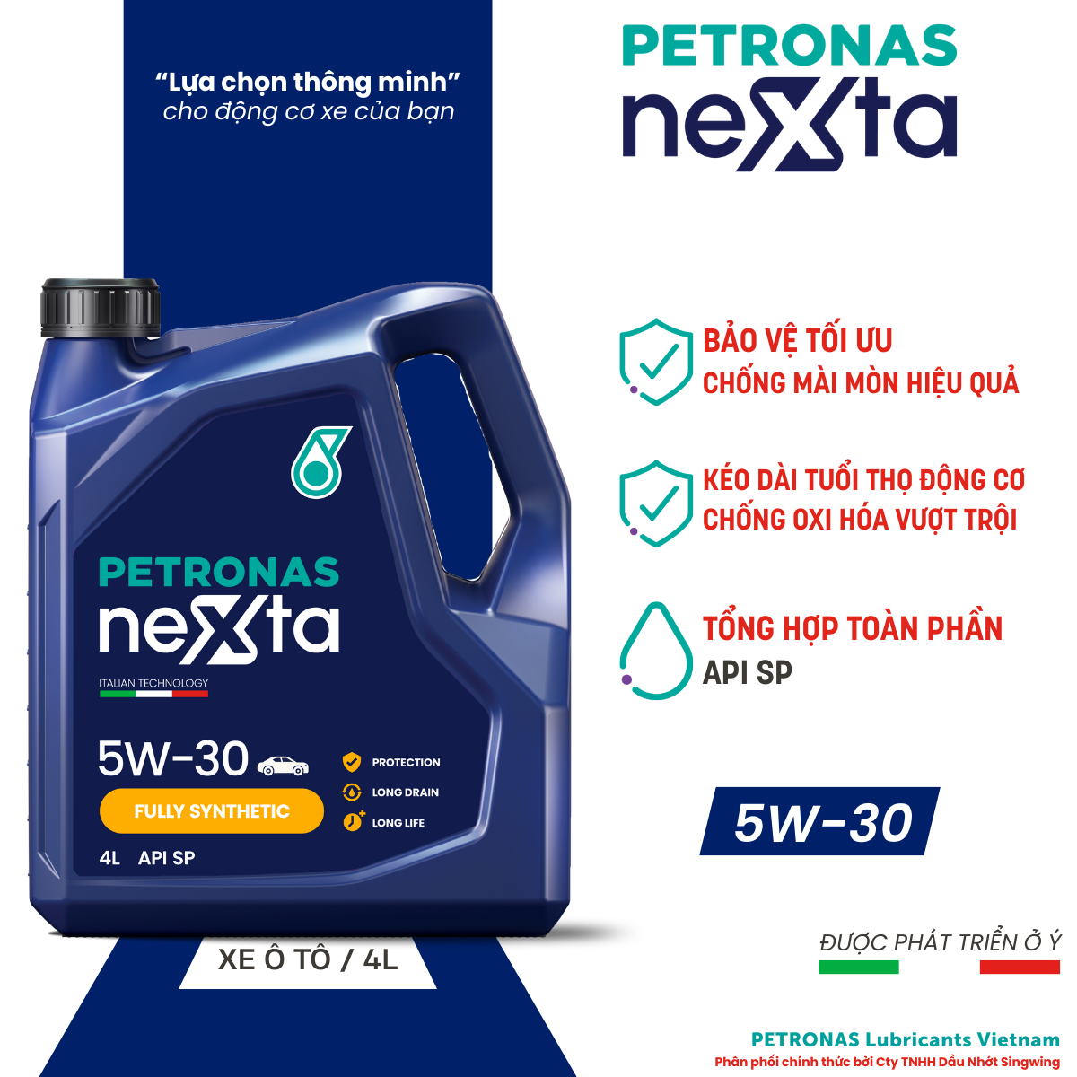 • PETRONAS NeXta 5W30 SP Fully Synthetic 4L là dầu động cơ tổng hợp toàn phần, được thiết kế cho các dòng xe du lịch hiện đại, SUV và xe van sử dụng động cơ xăng hoặc diesel.